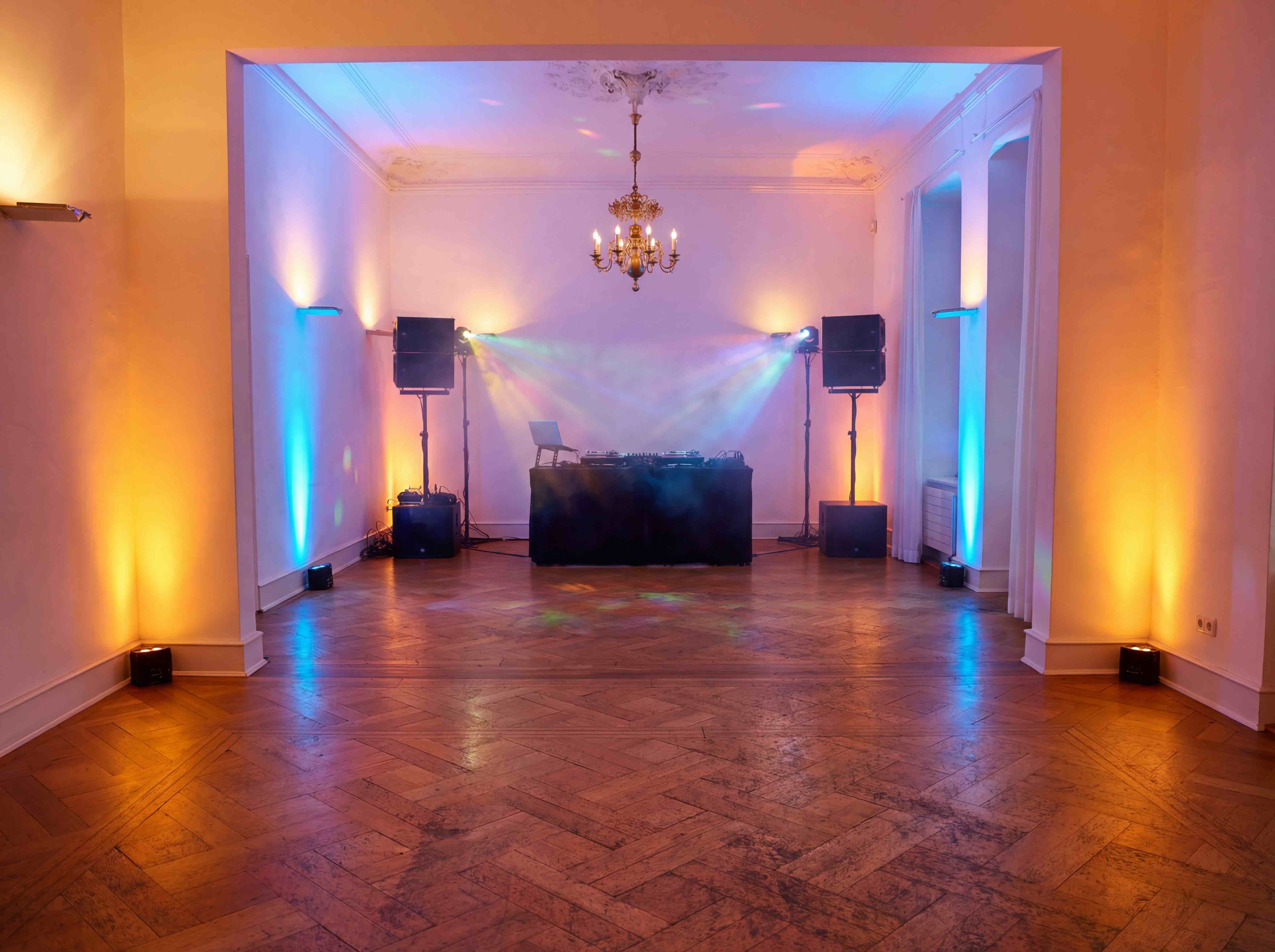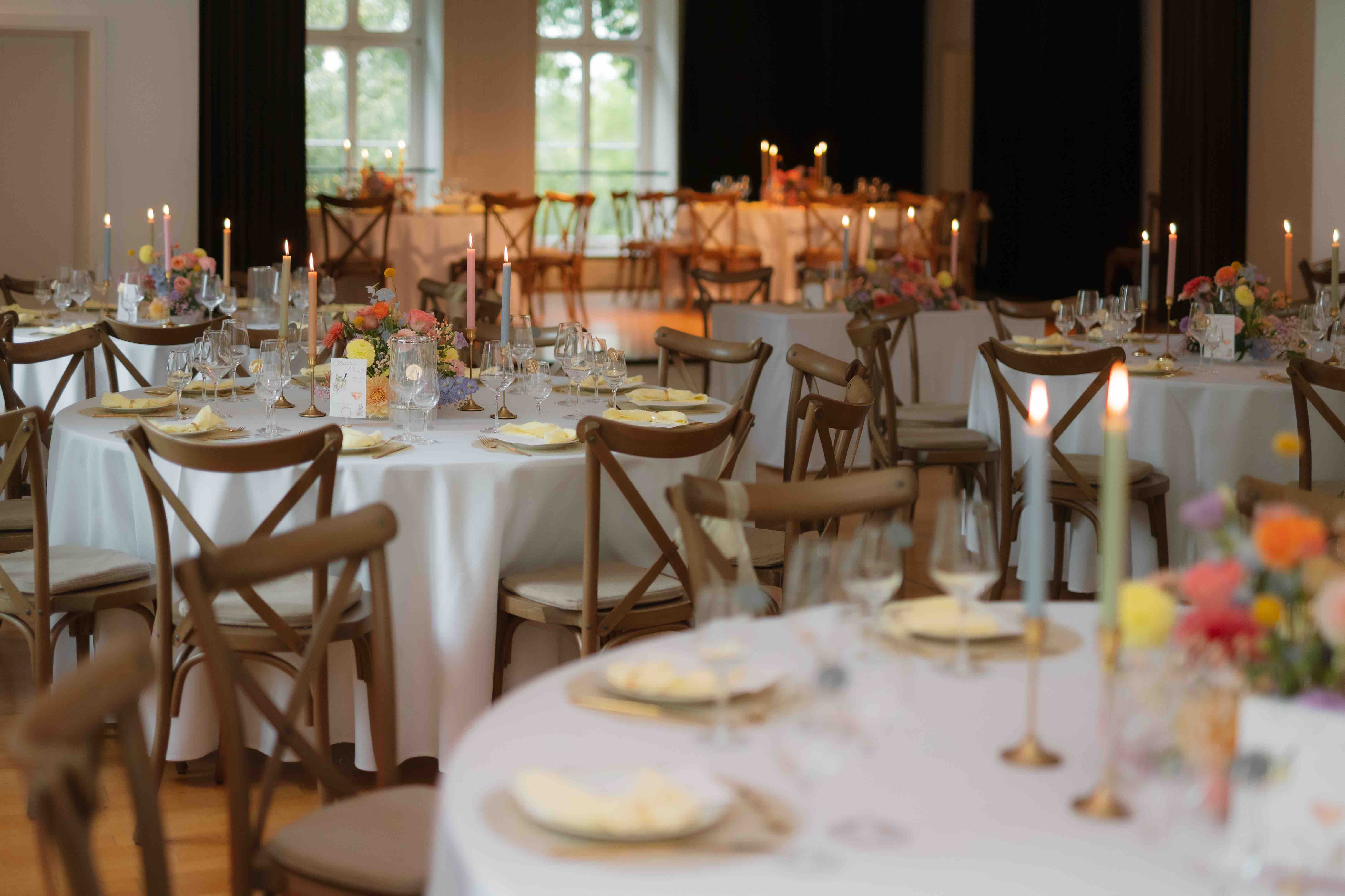 Der Große Saal verbindet zeitlose Eleganz mit modernem Komfort. Große Fenster, viel Licht und der Blick ins Grüne schaffen ein offenes Raumgefühl – ideal fürs Dinner und danach für eine ausgelassene Party auf der Tanzfläche. Dank hochwertiger Technik kommt Ihre Musik genauso zur Geltung, wie Sie sich es wünschen.