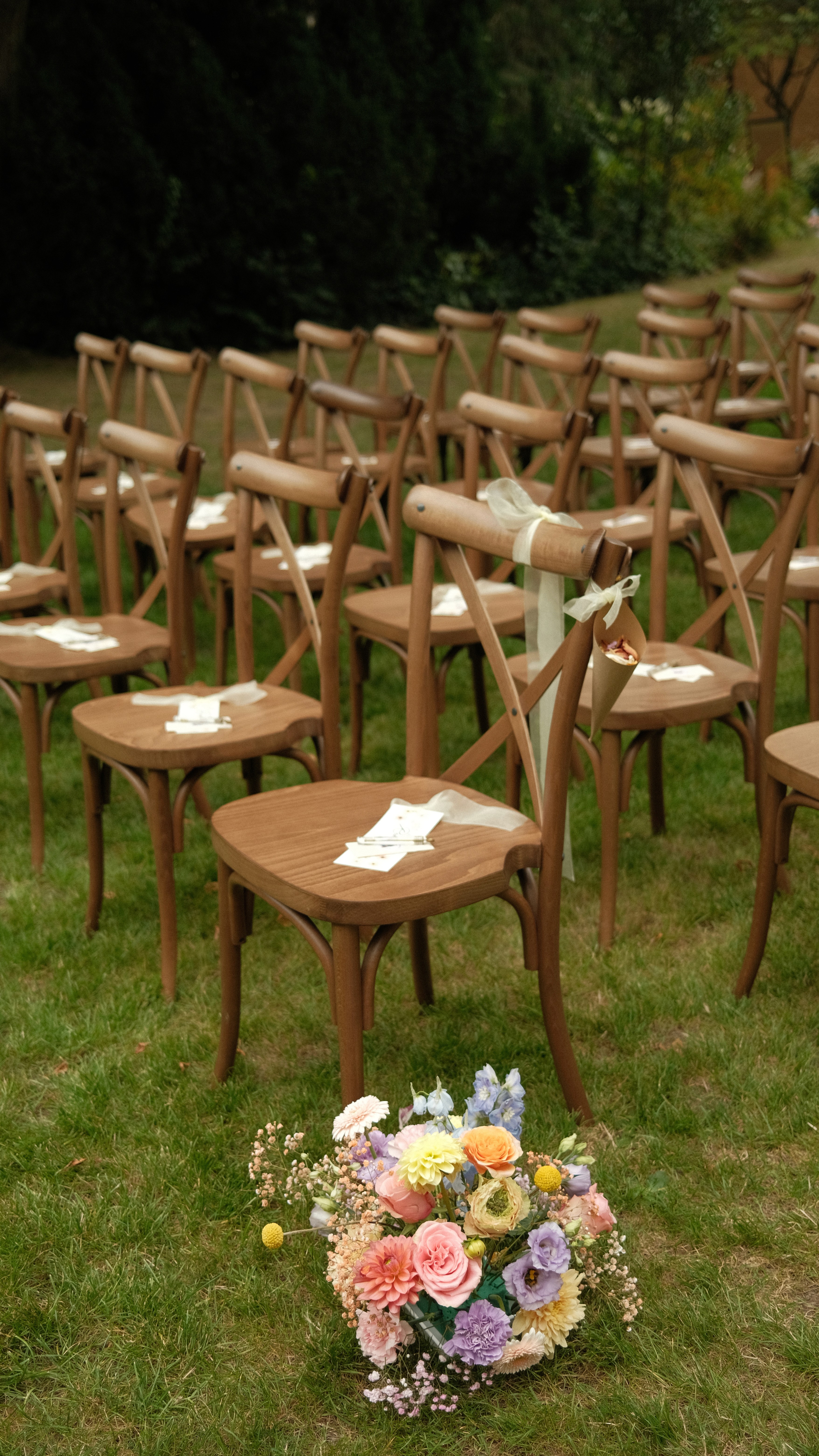Auf der weitläufigen Wiese, umgeben von alten Bäumen und vielen kleinen Details, entsteht eine natürliche und zugleich romantische Atmosphäre – im Frühling, wenn alles blüht, oder im Sommer, wenn die Baumkronen für Schatten sorgen.