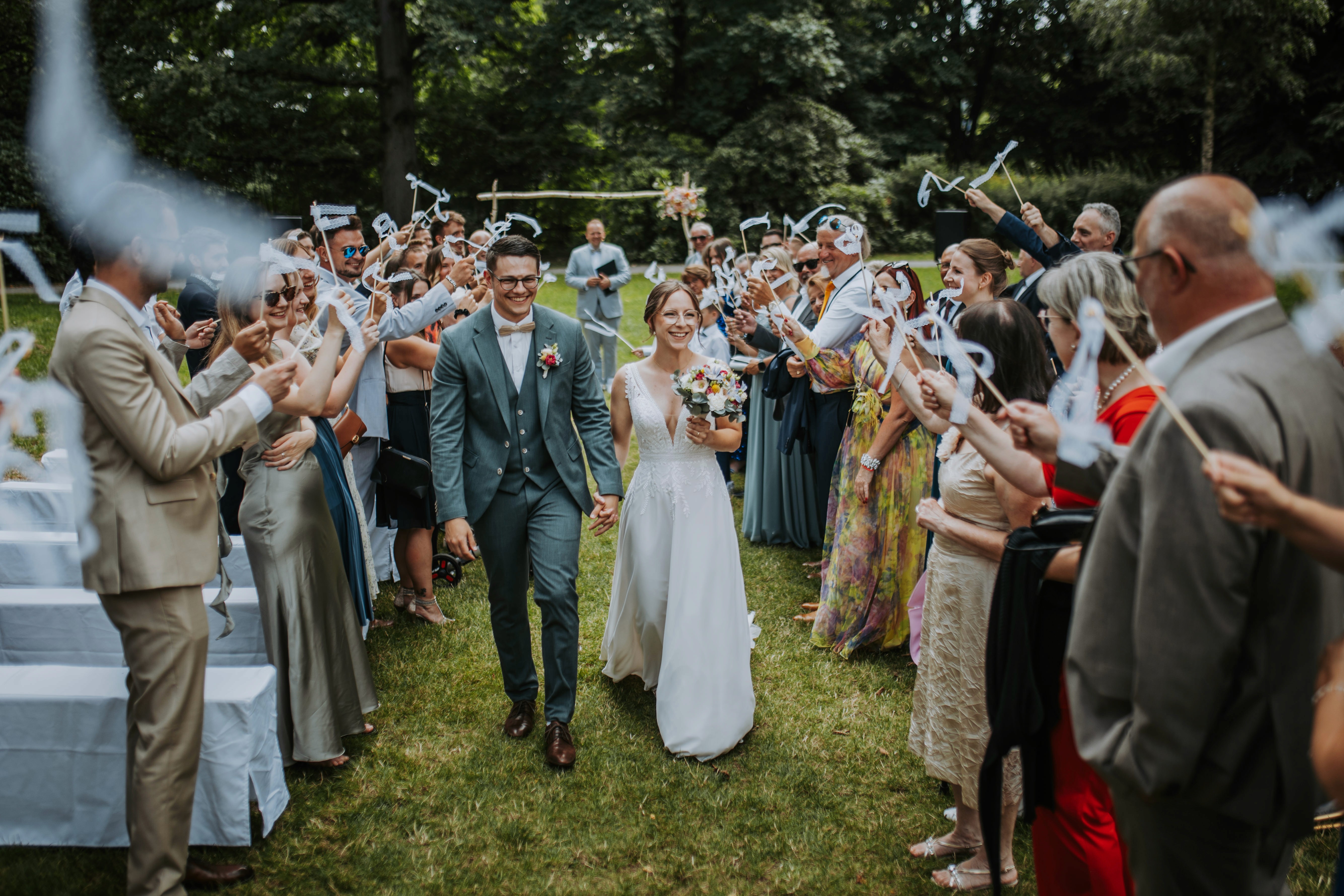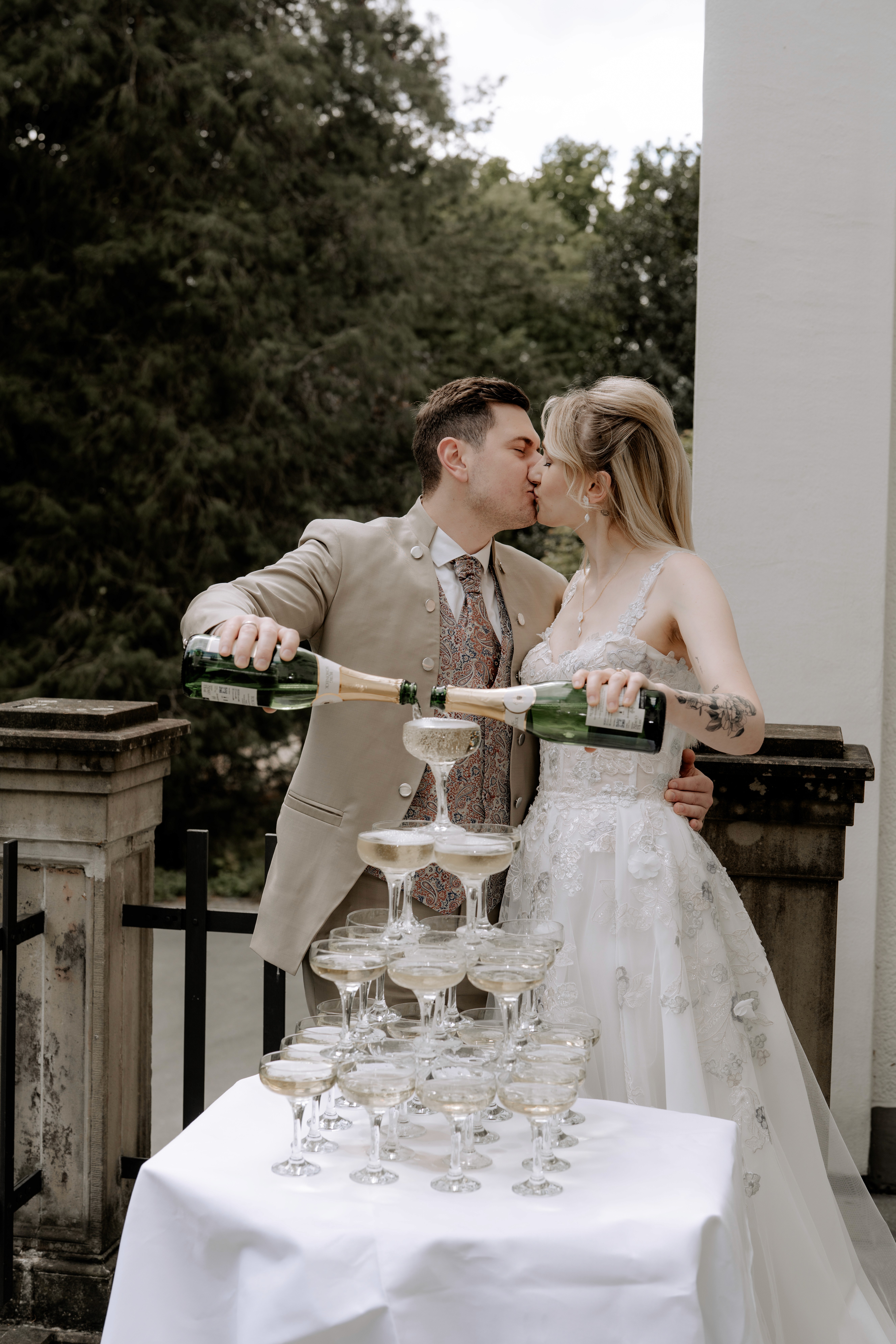 Nach dem emotionalen Ja-Wort beginnt der entspannte Teil des Hochzeitstages. Beim Empfang ist Zeit kurz durchzuatmen, Ihre Gäste zu umarmen und gemeinsam auf das anzustoßen, was gerade passiert ist – Sie sind verheiratet!