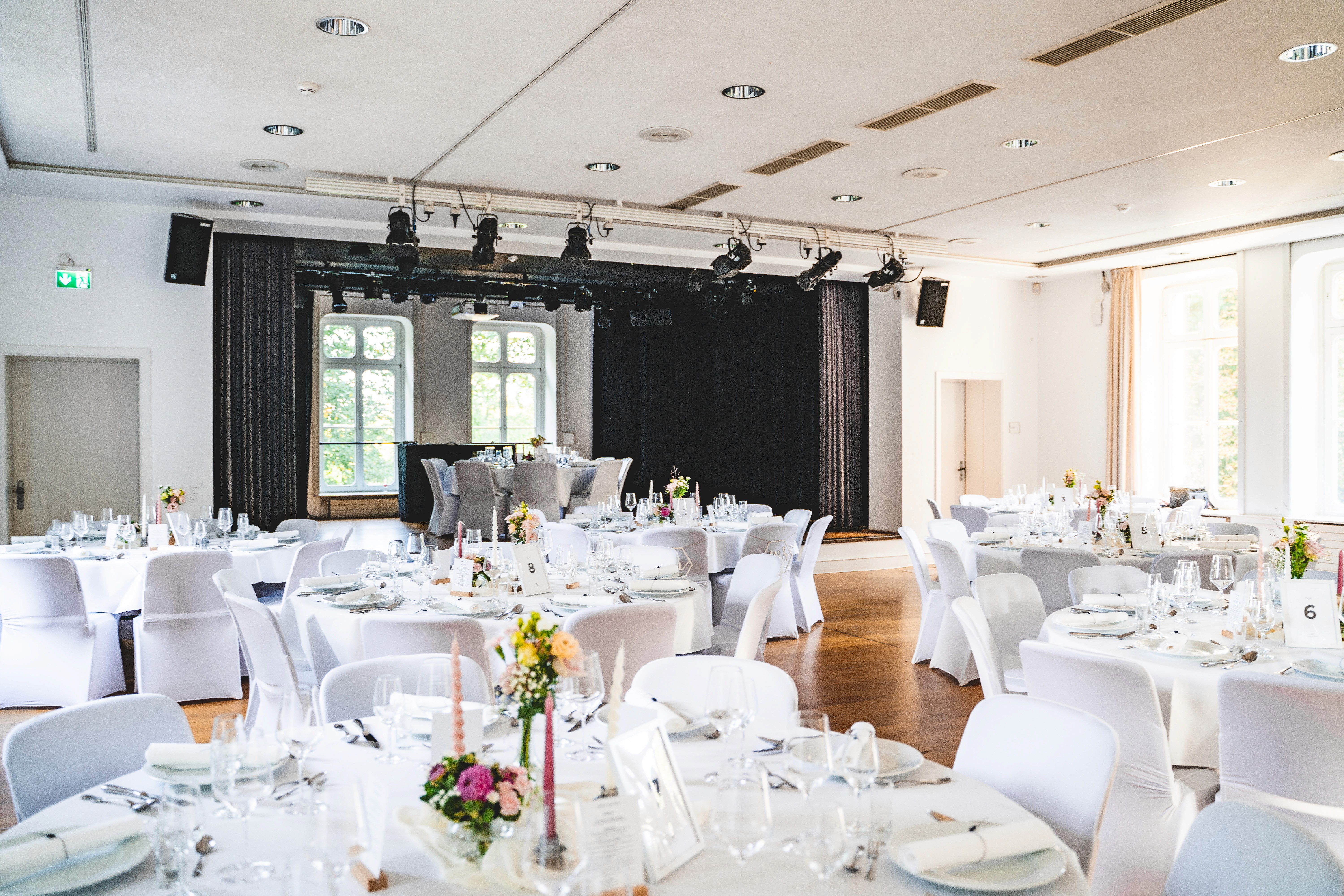 Nach einem gelungenen Empfang setzen Sie Ihre Hochzeit im Großen Saal oder im Terrassensaal der Weißen Villa Kreuztal fort. Beide Räume bieten Ihnen eine stilvolle Atmosphäre und den perfekten Rahmen für Ihre Hochzeit.