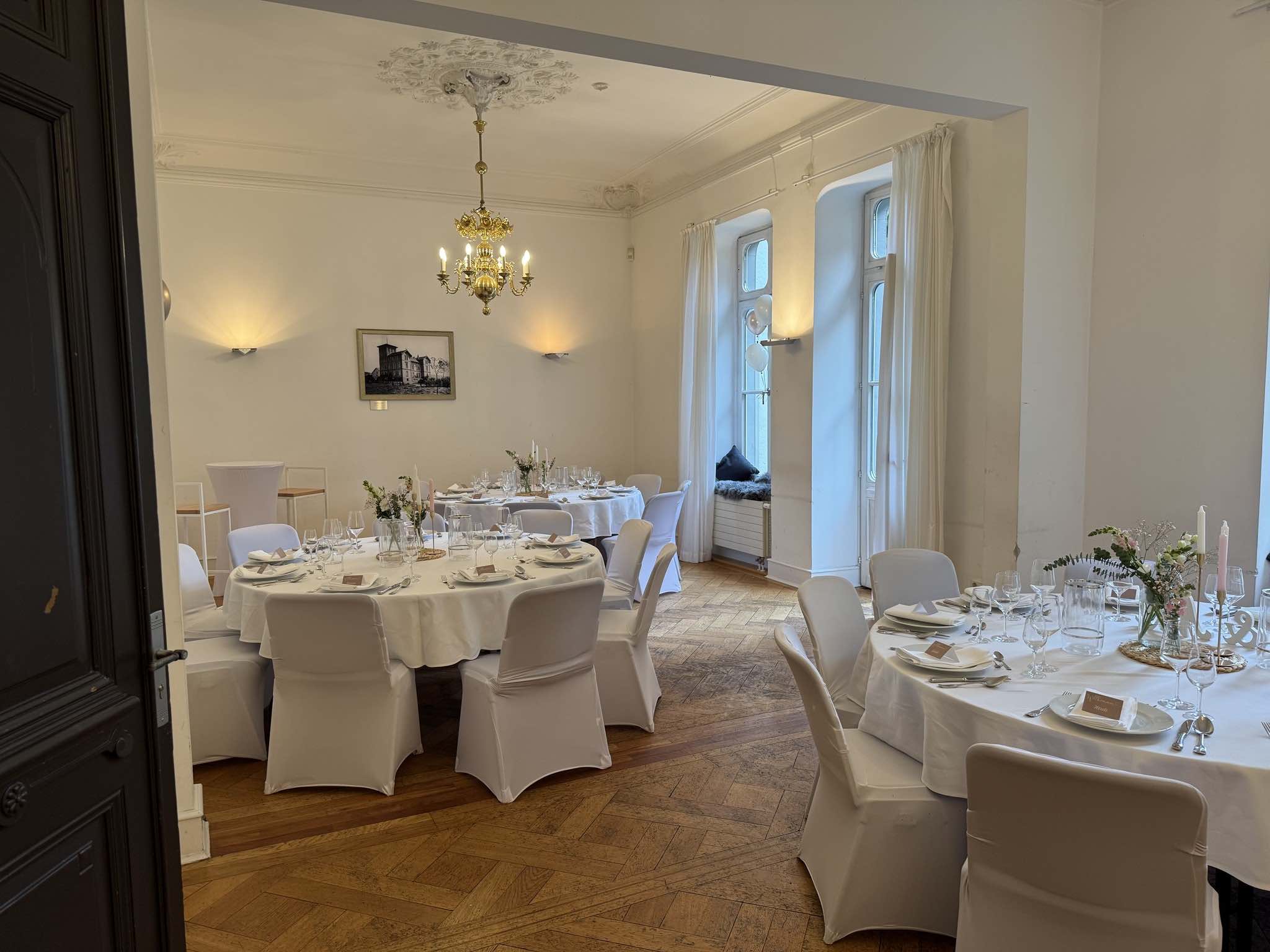 Der Terrassensaal eignet sich perfekt für kleinere Gesellschaften, freie Trauungen, den Sektempfang oder eine ausgelassene Party in privater Atmosphäre. Durch seine flexible Nutzung passt er sich eurem Ablauf ideal an.